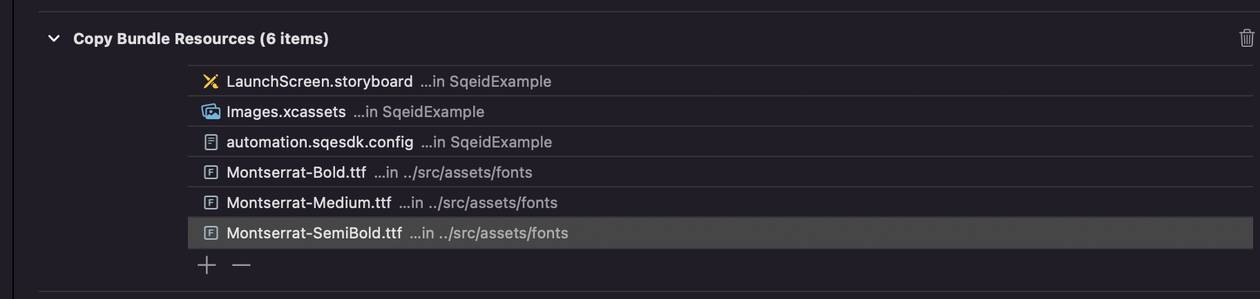 2. For iOS, add a new reference to the fonts in Xcode under Copy Bundle Resources.